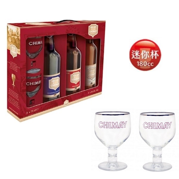 奇美白(750cc/8%)*1瓶+奇美藍(750cc/9%)*1瓶+奇美紅 (750cc/7%)*1瓶+奇美金(330cc/4.8%)*1瓶+奇美原廠杯(180cc)*2個 chimay-3b2g
