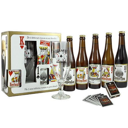 禮盒內含:梅花10+黑桃J+黑桃A+方塊Q+紅心K(*各一瓶330CC)+撲克牌杯*1個+撲克牌1副